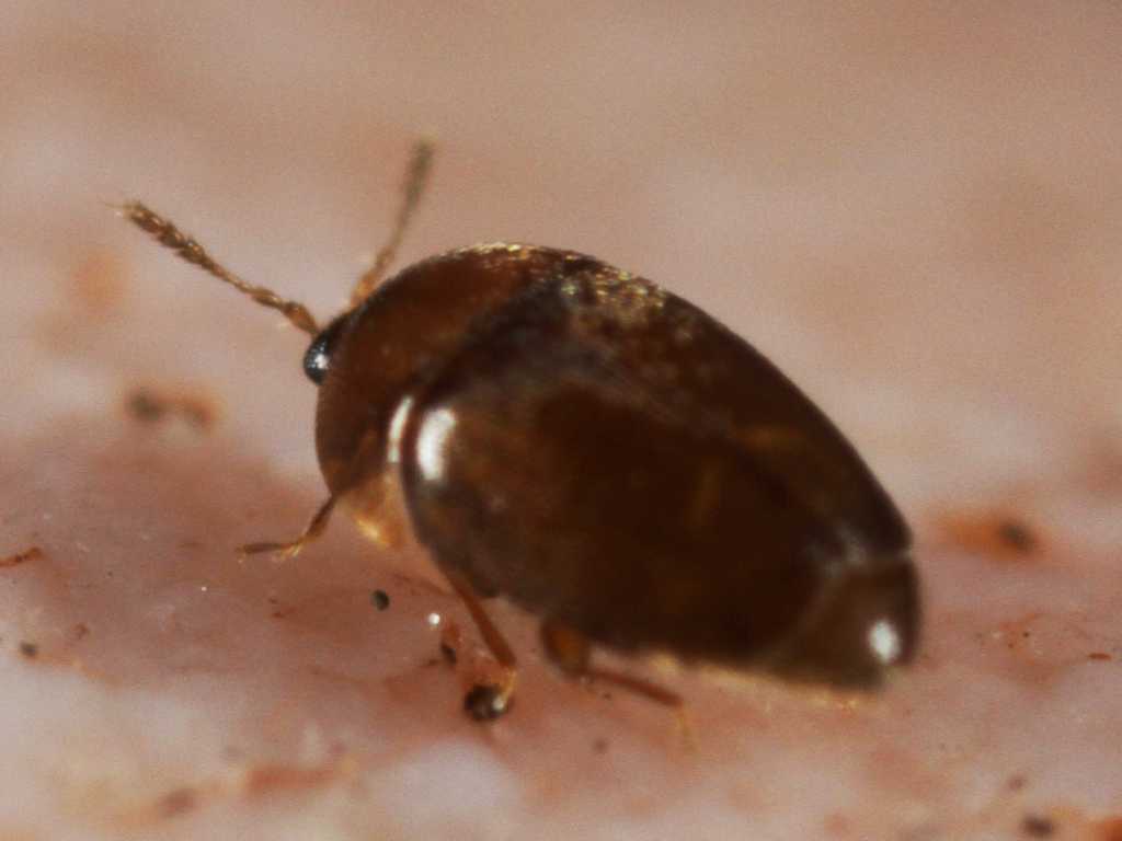 Accidenti, se volevate stupirmi ci siete riusciti. Non avevo finora sentito parlare di Corylophidae; ho subito fatto una ricerca con Google e ci sono decine di siti con foto e informazioni su questi micetofagi. In particolare in www.kerbtier.de ho trovato una foto di un Sericoderus lateralis (Gyllenhal 1827) che se non è proprio quello che ho fotografato io, ci assomiglia tanto. In particolare la linea del margine posteriore del pronoto è la stessa. L'unica cosa che non mi torna è che è sì molto piccolo, ma è comunque decisamente più lungo di un millimetro. Grazie a tutti.