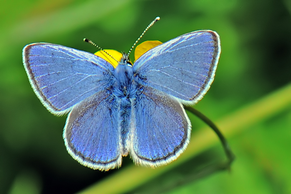 Il maschio ha la pagina superiore delle ali di una splendida tonalità d'azzurro.